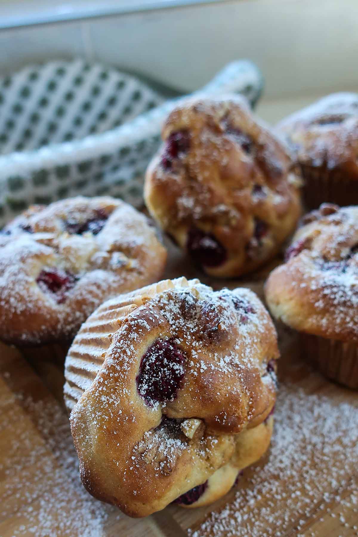 Pro tip: If using juicy fruit like berries, keep them mostly on top so the muffins stay light and fluffy.