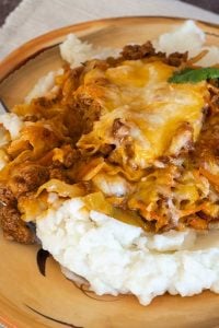 Are you feeling hungry? Or have big appetites to feed? Serve this cheesy cabbage chorizo dish over rice, mashed potatoes or fries. And be sure to save this Mexican-inspired recipe for Cinco de Mayo!