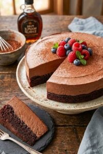 Discover how to make my favorite decadent chocolate mousse cake that is both gluten-free and egg-free. This is a simple recipe I’ve refined to create a rich, layered dessert that has become a reliable staple in my kitchen. I’ve found that combining chocolate base with a silky mousse topping gives you a deep, satisfying flavor using nutritious ingredients like maple syrup and olive oil. It is a straightforward way to serve something special without a lot of fuss.