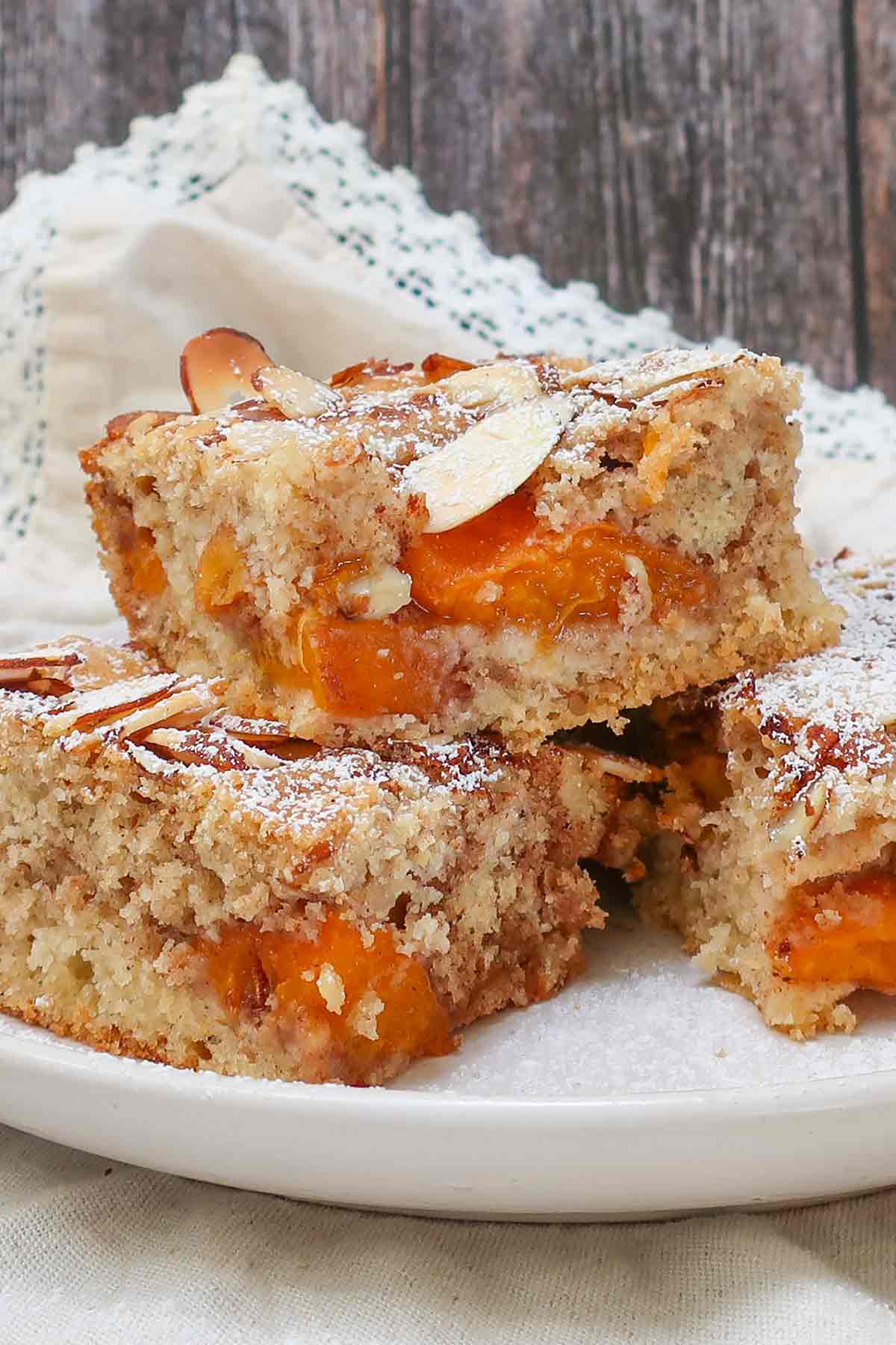 This Gluten-Free Farmer’s Apricot Cake is a delicious way to enjoy the flavors of fresh summer fruit. This gluten-free rendition of a classic farmer’s cake features the sweetness of spiced apricots while it has a light and tendertexture that’s perfect for any occasion. Dairy-free option is available.