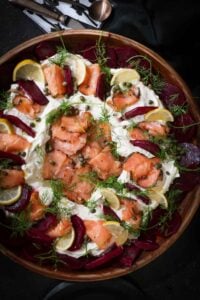 This Scandinavian-style cheese dip with smoked salmon platter is truly the best of both worlds: it’s ridiculously easy to make, but it looks and tastes like you’ve spent hours in the kitchen. It’s creamy, colorful, and bursting with fresh flavors that work for pretty much any occasion.
