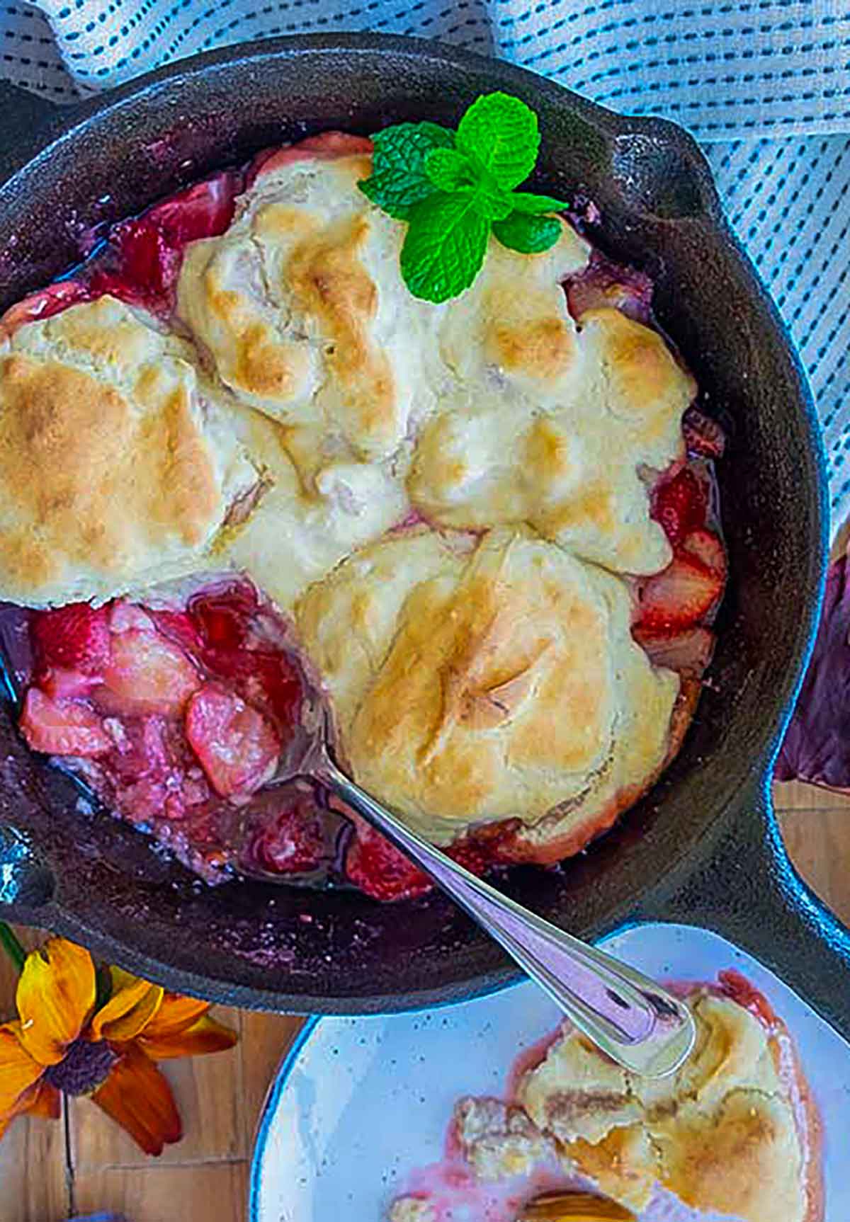 Can I use frozen strawberries instead of fresh? Yes. Thaw them first and drain off excess liquid. Frozen strawberries release more juice, so skipping this step can make the cobbler too saucy.